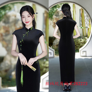 新中式国风竹叶刺绣改良旗袍2025秋季新款感气质旗袍连衣裙女