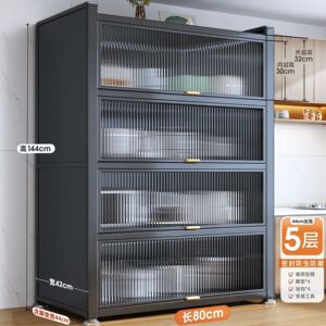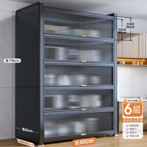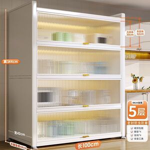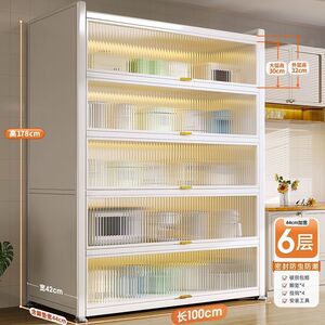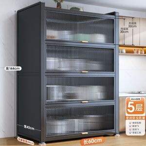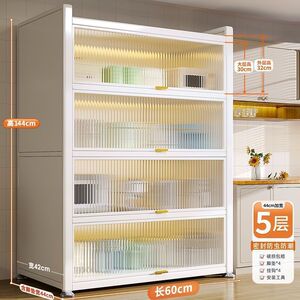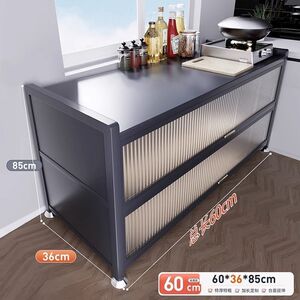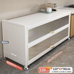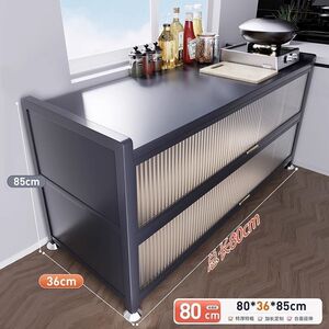 不锈钢厨房置物架落地多层收纳碗柜多功能微波炉橱柜餐边储物柜子