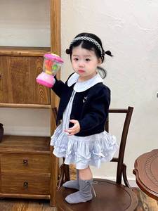 甜小司女童秋装套装秋季新款藏青针织毛衣宝宝衬衫裙子时尚两件套