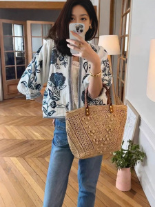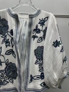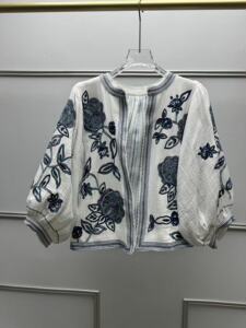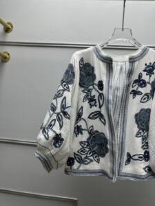 南油外套女款高端清冷舒适重工立体绣花圆领无扣灯笼袖民族风外套