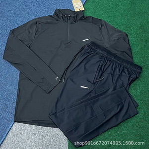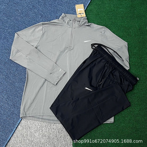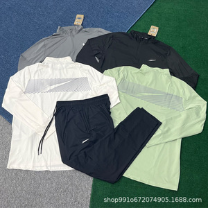 2025潮流训练跑步健身长袖套装运动套装弹力速干透气外贸薄男新款