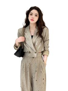 短款外套+阔腿裤两件套女设计感西装套装秋冬季新款时尚感西装领