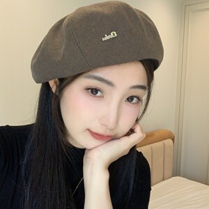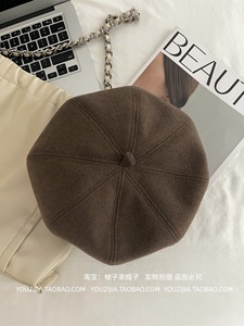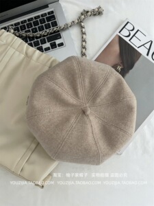 2025新款秋冬毛呢金属贝雷帽女韩系复古文艺甜美百搭显脸小八角帽