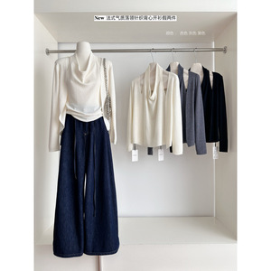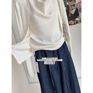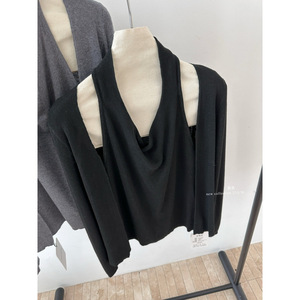 2025秋季新款假两件荡领挂脖长袖上衣慵懒针织设计感女
