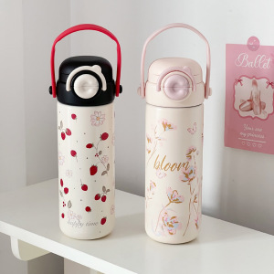 弹跳双饮保温杯食品级学生水杯高颜值便携新品防摔杯子伴手礼杯子