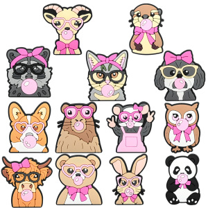 亚马逊粉色可爱小动物pvc软胶贴片发饰手机壳鞋花卡通diy饰品配件