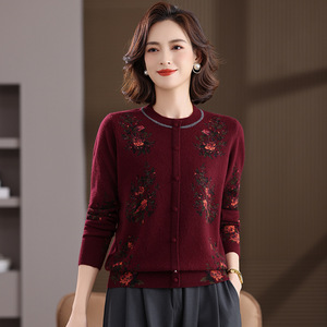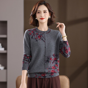 中年妈妈装针织衫内搭女春秋新款中老年人印花洋气秋冬羊毛衫上衣