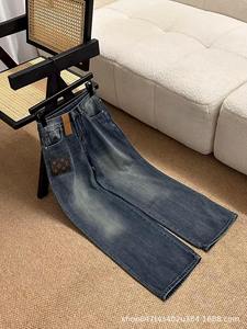 25驴家轻奢老花水洗直筒牛仔裤女百搭高腰显瘦宽松设计高级感长裤