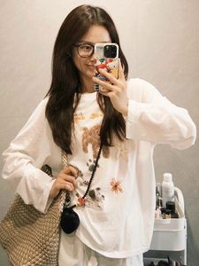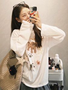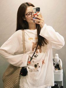 韩国ins早秋韩系可爱小狗长袖T恤女2025新款慵懒宽松休闲显瘦上衣