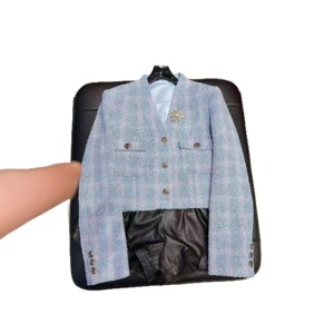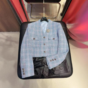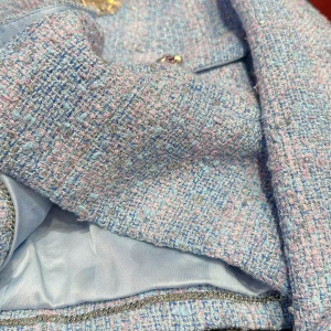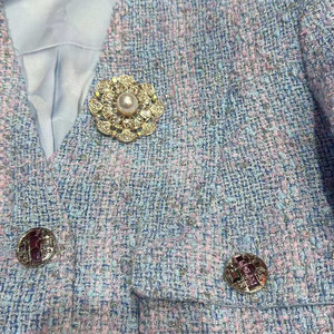 南油直供 25秋冬款气质优雅名媛单排扣亮片编织粗花呢V领修身外套