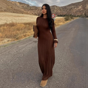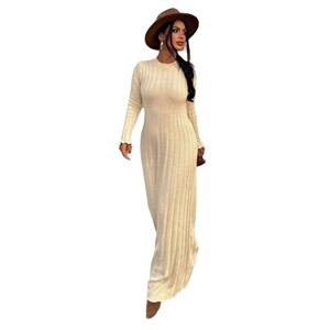 欧美女装跨境外贸时尚2025秋季新款保暖圆领针织毛衣裙包臀修身