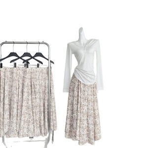 2025秋季新款小清新碎花中长款松紧腰A字半身裙休闲氛围感好看