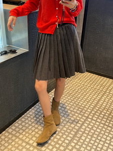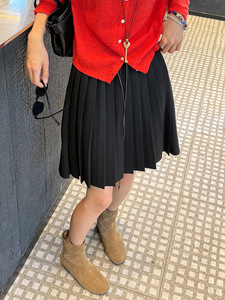 黎诺秋季新款韩系针织撞色百褶中裙女2025设计感显瘦减龄短裙子潮