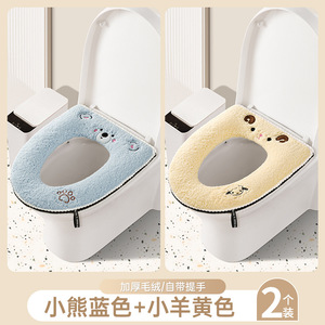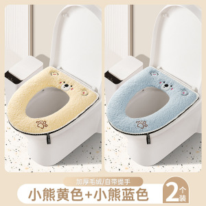 羊羔绒马桶垫【熊黄+熊蓝】拉链款