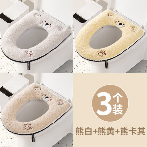羊羔绒马桶垫【熊白+熊黄+熊卡】拉链款