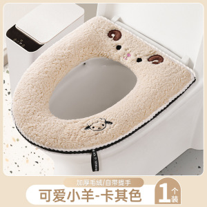 羊羔绒马桶垫【小羊卡其色】拉链款