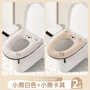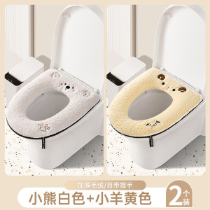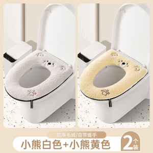 羊羔绒马桶垫【熊白+熊黄】拉链款