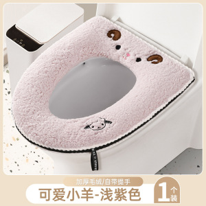 羊羔绒马桶垫【小羊紫色】拉链款
