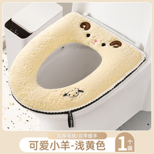羊羔绒马桶垫【小羊黄色】拉链款