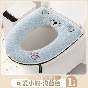 羊羔绒马桶垫【小熊蓝色】拉链款