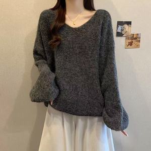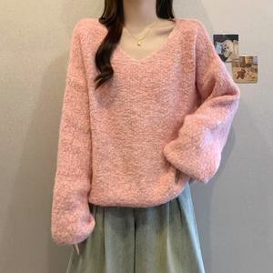 冬季氛围感慵懒风V领套头毛衣女2025新款韩系气质叠穿针织衫上衣