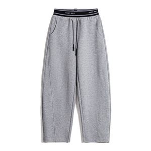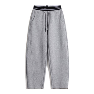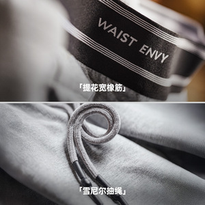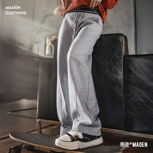 马登花灰撞色双腰头假两件抽绳直筒香蕉镰弯刀休闲运动卫裤女士秋