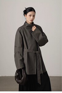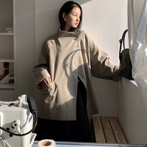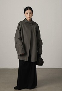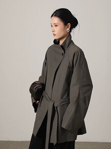 秋季新款立领一粒扣廓形中长款风衣外套经典A形上衣146