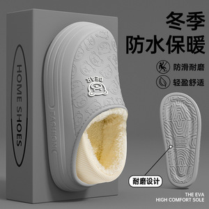 防水棉拖鞋女士秋冬季2025新款室内家居保暖毛绒防滑包跟月子棉鞋