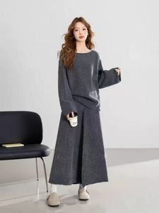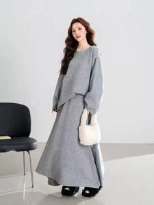 跨境秋冬款时尚休闲套头毛衣女针织半身裙套装女外贸宽松两件套