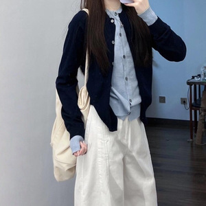 【爆款现货】秋季时尚假两件针织开衫气质甜色直筒牛仔裤两件套