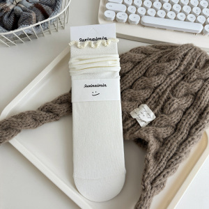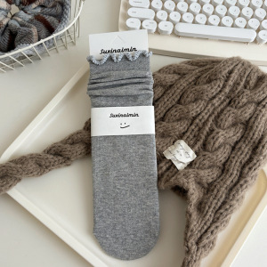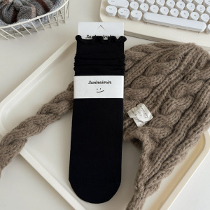 秋冬简约百搭纯色中筒木耳边堆堆袜学院风无骨日系休闲袜子女纯棉