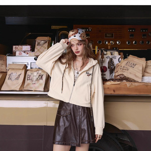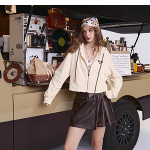 妖精的 刺绣连帽卫衣开衫外套女2025年早秋新款小个子宽松短款