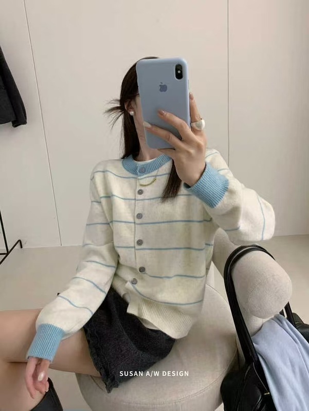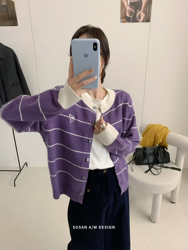 苏珊 2025秋冬季新款韩版条纹爱心针织开衫毛衣女宽松上衣27556