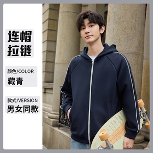 落肩卫衣定制工作服刺绣印logo班服套头潮牌连帽长袖工装拉链外套