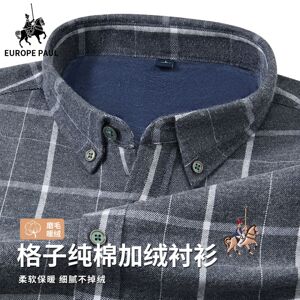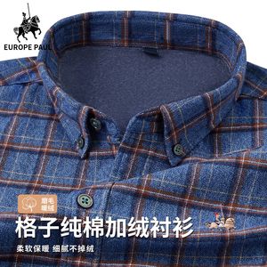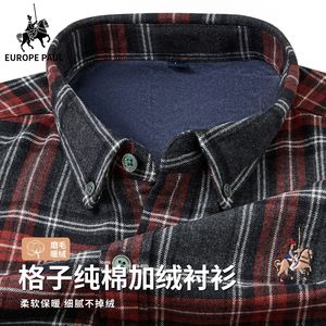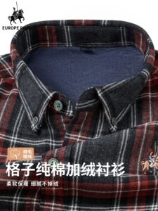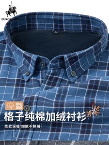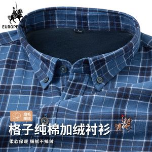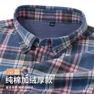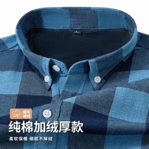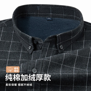 【2026马年刺绣】冬季纯棉保暖男士衬衫长袖加绒加厚磨毛格子衬衣