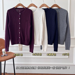 25秋季新款女士韩系复古麻花显瘦薄款圆领毛衣针织衫外套0909q8