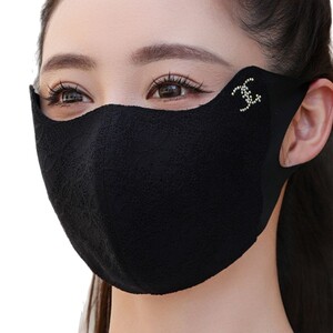 秋冬季优雅蕾丝保暖口罩女高颜值防风防寒加厚防尘显脸小遮脸面罩