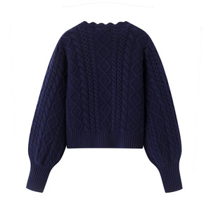 2025秋冬季新款女甜美童趣刺绣花领泡泡袖毛衣针织开衫2530M41563