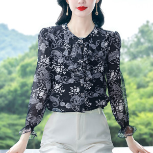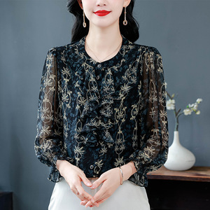 妈妈碎花雪纺长袖衬衫女士春秋季2025新款秋装减龄衬衣女洋气上衣