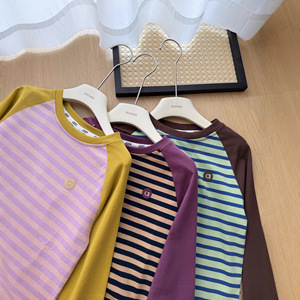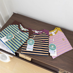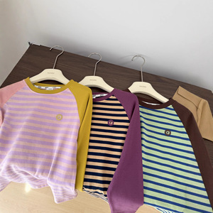 新款儿童撞色条纹打底衫一件包邮890929