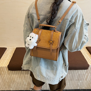 跨境女包秋冬新款复古磨砂星星双肩包高级感学院风少女多用小背包