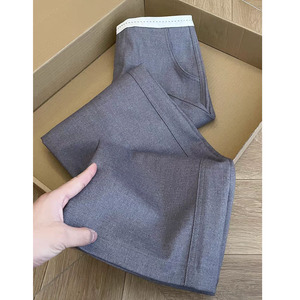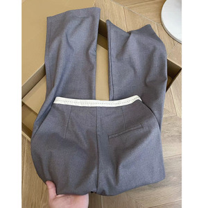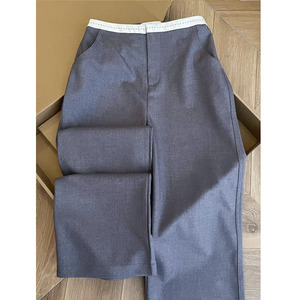 2025法式设计感小众垂感弯刀裤韩系简约灰色拼接高腰西装阔腿裤女