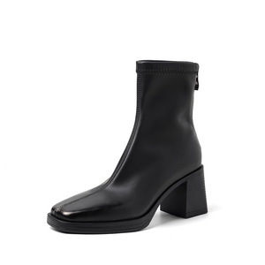 静音底舒适通勤百搭瘦瘦靴2025秋冬粗跟高跟方头弹力短靴女42大码