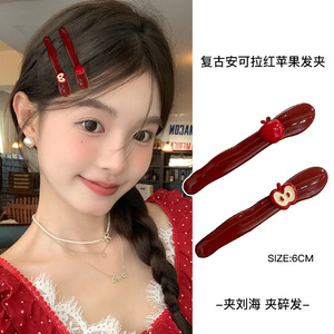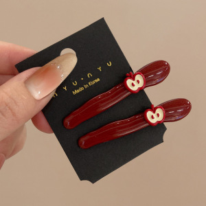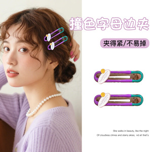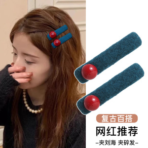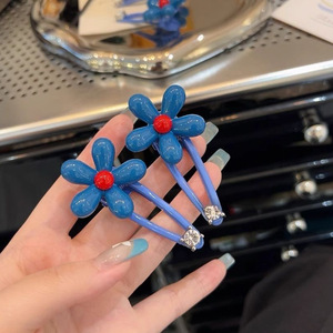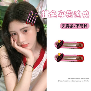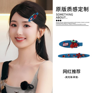 蓝咖撞色爱心发夹女高级感侧边刘海夹前额碎发一字鸭嘴夹发卡头饰