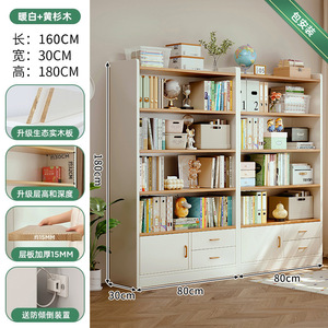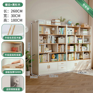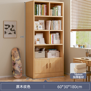 实木书柜储物柜一体靠墙展示柜带门客厅落地置物架家庭阅读区布置