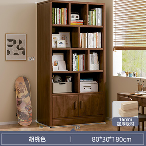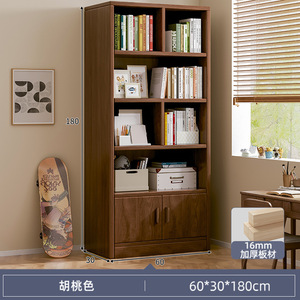 加厚15MM实木生态板【60*30*180】带柜门深胡桃色 送货上门
