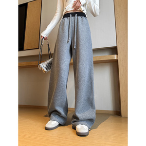 拼色弯刀阔腿裤女5新高级感抽绳百搭宽松休闲卫裤高腰显瘦运动裤