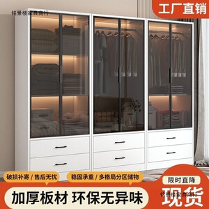 衣柜家用卧室现代简约轻奢小户型柜子组合多功能主卧玻璃门衣橱