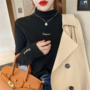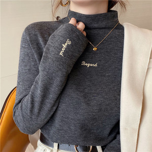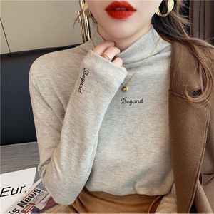 半高领德绒打底衫女春秋冬季刺绣设计绣花内搭保暖韩版潮流上衣女