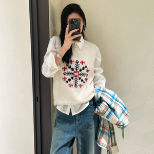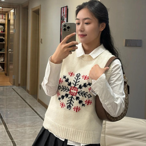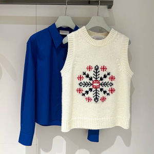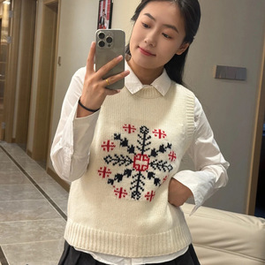 ER圆领雪花提花叠穿针织背心女 2025年秋季新款通勤套衫毛衣上衣